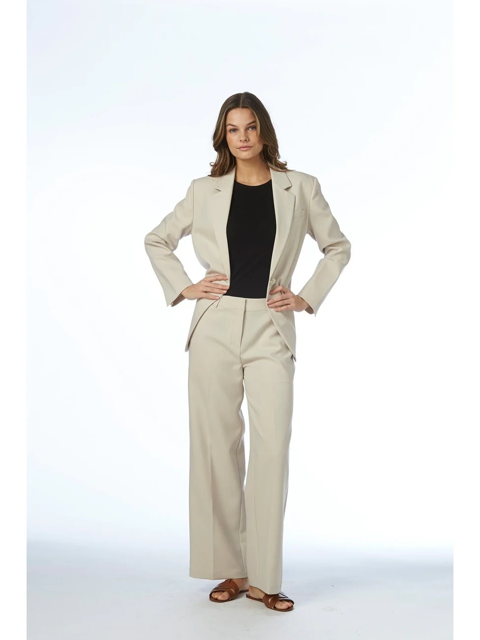 Oppgrader garderobens essensielle plagg med denne allsidige, ribbestrikkede tanktoppen, laget av en myk og elastisk blanding av 45 % viskose, 45 % bomull og 10 % elastan. Designet for komfort og holdbarhet, er dette tidløse plagget en perfekt match til enhver stil. Ideell for lag-på-lag-antrekk eller alene, den passer enkelt til bukser, jeans eller skjørt – et uunnværlig basisplagg i hverdagsgarderoben din.
