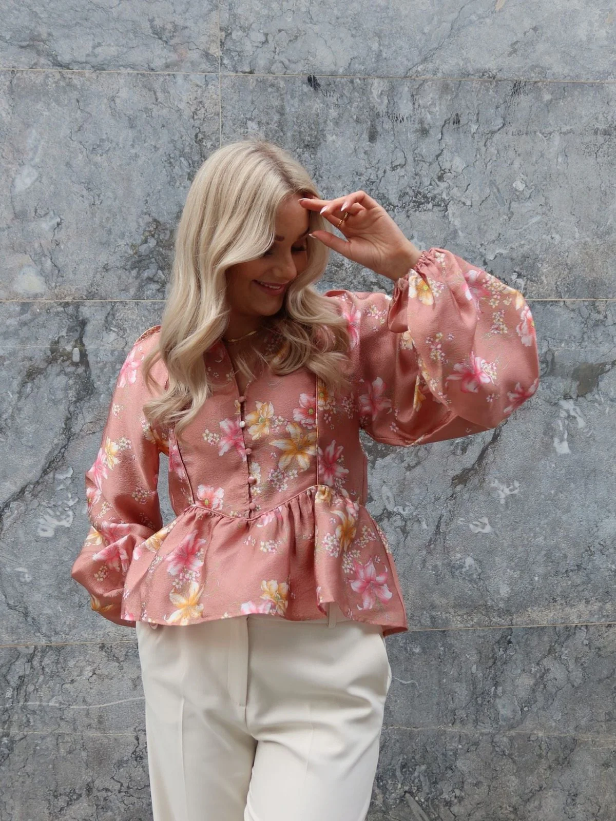 Nova Blusen er laget av 100 % resirkulert polyester og kombinerer eleganse med bærekraft. Den lette, glansfulle kvaliteten og det delikate blomsterprintet gir en sofistikert touch til antrekket. Med voluminøse ermer og en flatterende peplum-hem skapes en feminin silhuett som passer like godt til hverdags som til kvelden. Kombiner den med dressbukser for et stilrent og gjennomført uttrykk.